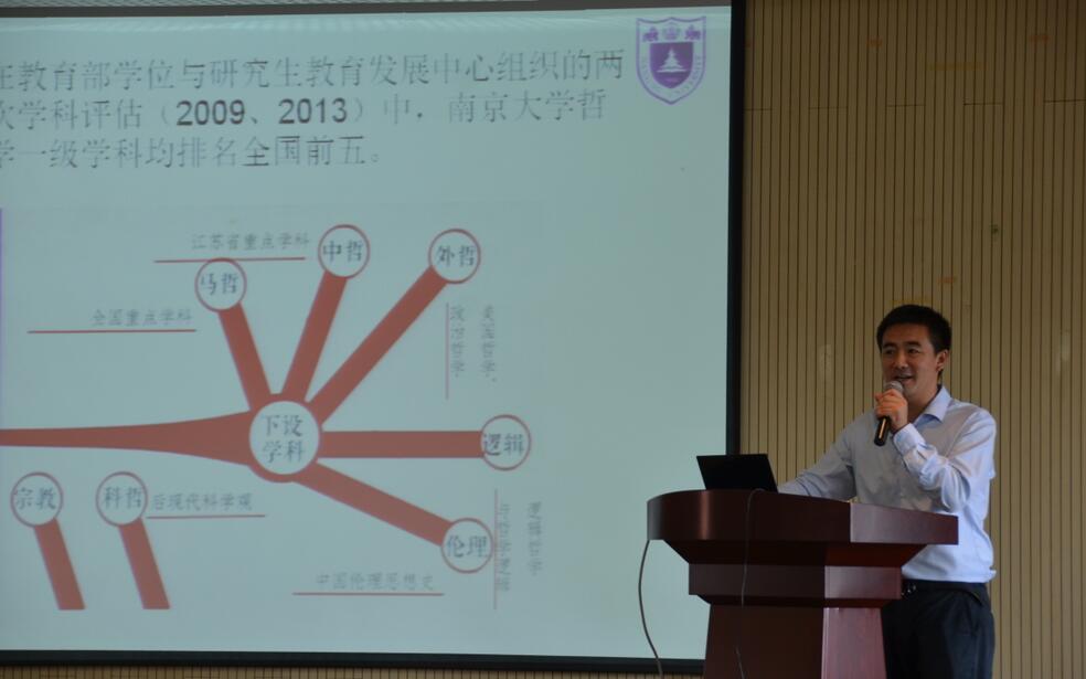 吕翔学长以“为什么选哲学系没选数学系?”这样一个问题为开端开始他的发言,表示当初是偶然发现数学的公式太过单调,课堂太过枯燥,所以对内容相对丰富的哲学产生了兴趣,于是就与哲学结下了不解之缘。接下来,学长就当时学习哲学对自身的启发和引导作用作了说明,表示在南哲学习四年养成的学习习惯和学习态度让他能够对各个行业都有一个相对深刻的理解和认知。并与自己的导师开玩笑说到“从柏拉图往智者方向走,你的能力就会显得绰绰有余”。学长对各个行业表现出来的自信也让我们信心满满。