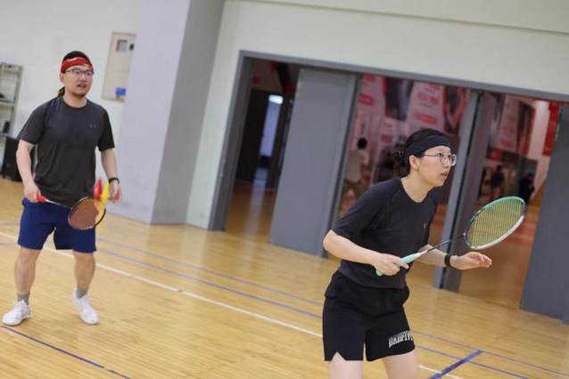 在双打比赛中,XCSport关工委副主任吴雨芳老师凭借多年羽毛球比赛经验在和青年员工组成的临时组合中,仍然展现出了稳扎稳打的风格,在季军赛中力压对手组合获得了胜利。