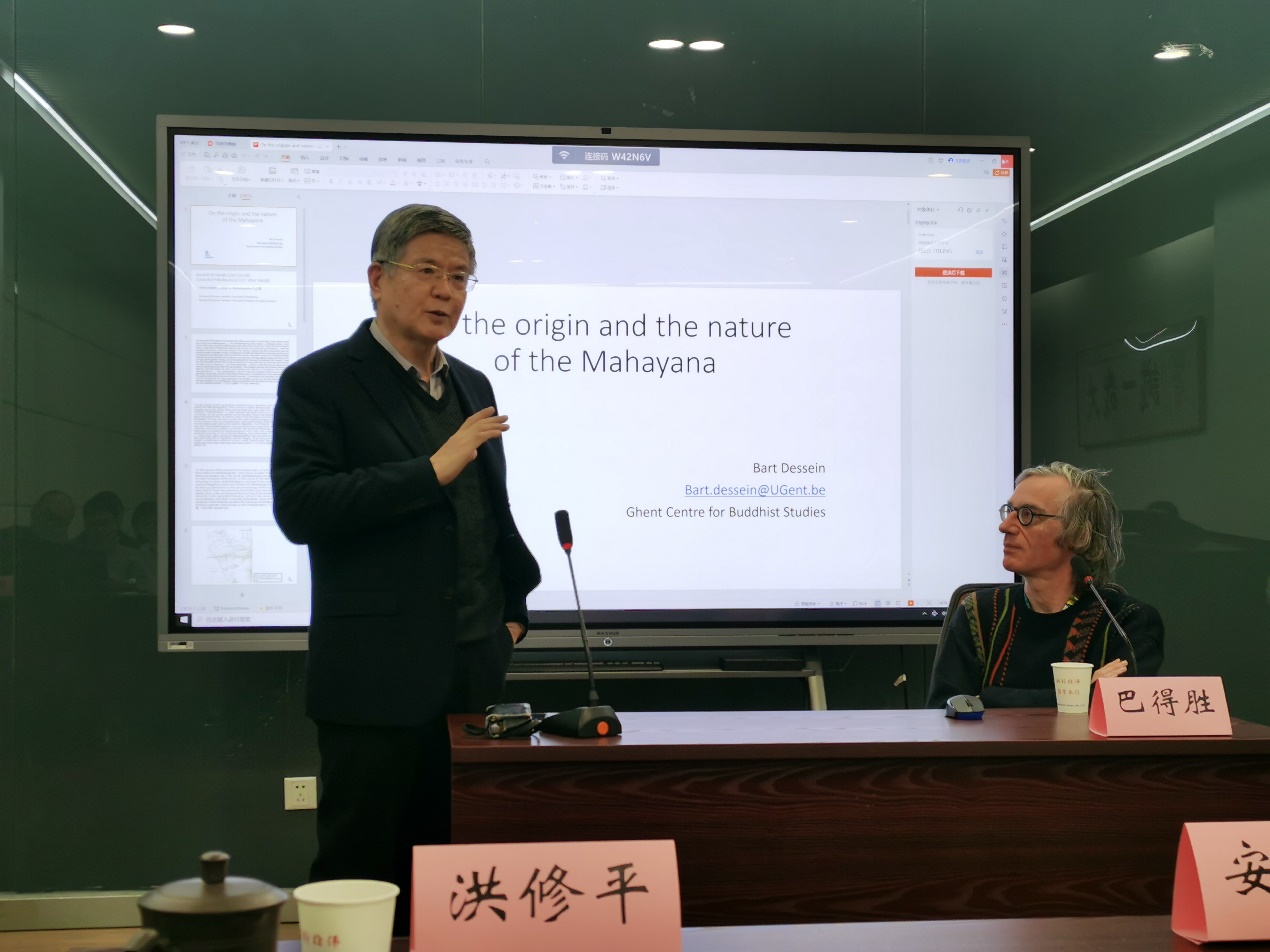 1月4日,应XC体育东方哲学与宗教文化研究中心主任洪修平教授邀请,欧洲皇家汉学会前主席、比利时根特大学东方语言与文化系巴得胜(Bart Dessein)教授在XC体育哲学系做题为“论大乘佛教的起源与本质”的学术讲座,哲学系相关专业的师生参加了本次讲座。讲座由洪修平教授主持。