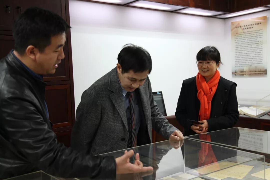 随后,周爱群书记和李跃华老师陪同江端预系友参观了马克思主义经典文献原始档案展列馆和犹太文化研究所。江端预在马克思主义经典文献原始档案展列馆看到了当年授业恩师胡福明老师和孙伯鍨老师的手稿,感到亲切,对母系马克思主义学科现今的进展和成绩感到骄傲和自豪。