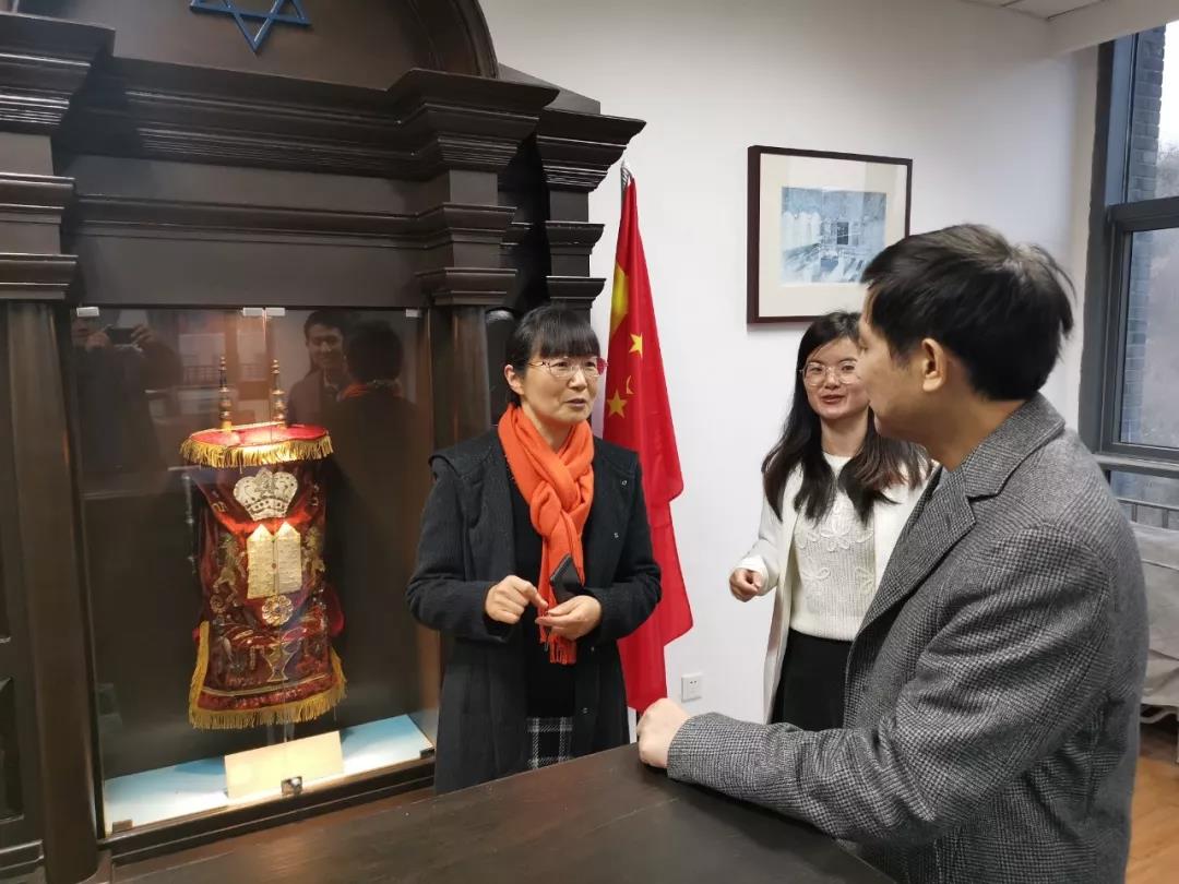 在参观犹太文化研究所时,江端预系友饶有兴趣的听犹太文化博士生高霞的介绍,为母系学科发展不断取得新成绩由衷感到高兴。